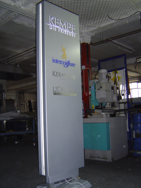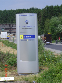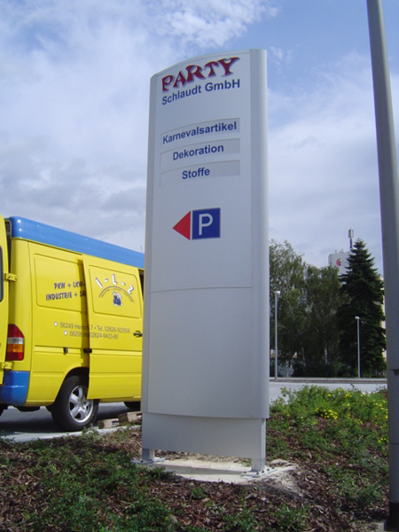 Werbeflächen aus Acrylglas oder Aluminium Fronbeschriftung oder beidseitig mit Rückseite beschriftet mit CAD-Hochleistungsfolie oder im Digitaldruck.